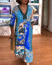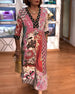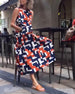 SPECYFIKACJA: Styl: Nieformalny Materiał: 65% poliester, 35% elastan Rodzaj Sukienki: Trapezowa Długość Sukienki: Maxi Dekolt: Dekolt Kopertowy Wzór: Nadruk/Wzór Rodzaj rękawa: Rękaw standardowy Długość rękawa: Długi rękaw Detale: Kieszeń, Guziki Typ sylwetki: Regularny Pora roku: Wiosna, Jesień, Zima Okazja: Na co dzień Paczka zawiera: 1 x S...
