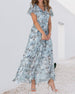 SPECYFIKACJA: Styl: Nieformalny, Urlop, Słodki Materiał: Szyfon Rodzaj Sukienki: Trapezowa Długość Sukienki: Maxi Dekolt: W serek Wzór: Kwiatowy, Nadruk/Wzór Typ rękawa: Rękaw z falbanką Długość rękawa: Krótki rękaw Detale: Falbanka Typ sylwetki: Regularny Pora roku: Wiosna, Lato, Jesień Okazja: Na co dzień, Wakacje Paczka zawiera: 1 x Sukien...