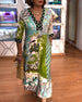 Długa sukienka z nadrukiem z dekoltem w serek i krótkim rękawem