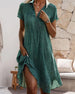 SPECYFIKACJA Styl: Tymczasowy, Wakacje Materiał: 100% Poliester Dekolt: Dekolt w szpic Rodzaj rękawa: Flare rękawy Długość rękawa: Krótki rękaw Typ wzoru: Naprawiono Okazje: Dagligean, święta Długość: Powyżej kolana Typ dopasowania: Luźny Sezon: Lato Pakiet zawiera: 1 x sukienka TABELA ROZMIARÓW (cm) Rozmiar Biust Długość S 98 92 ...