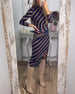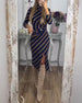 Seksowna sukienka w paski z zabudowanym dekoltem