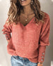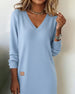 Sweter casualowy w jednolitym kolorze z dekoltem w serek