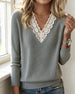 Sweter Z Dekoltem W Serek I Koronkowym Panelem