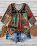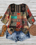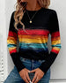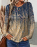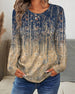Top Retro Okrągły Dekolt Drukowany Długi Rękaw