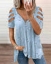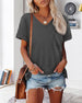 Luźna koszulka z krótkim rękawem i dekoltem w serek