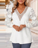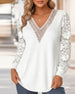 Koszulka swobodna, koronkowa, z dekoltem w serek i długim rękawem
