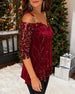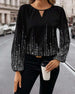 Top Z Cekinami Off-Shoulder Długi Rękaw