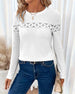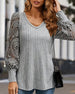 Koszulka z okrągłym dekoltem, koronką, patchworkiem i długim rękawem