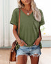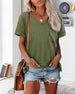 Jednolita kolorowa koszulka z krótkim rękawem i dekoltem w serek