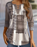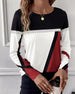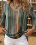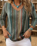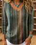 Top Geometryczny Print Długi Rękaw Dekolt V