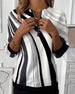 SPECYFIKACJE: Rodzaj Bluzki: Topy Styl: Nieformalny Materiał: Bawełna z domieszką Okazja: Na co dzień Dekolt: W serek Wzór: W paski Sleeve Type: Rękaw standardowy Długość rękawa: Długi rękaw Typ sylwetki: Regularny Pora roku: Jesień,Zima Detale: Guziki Paczka zawiera: 1 x Top TABELA ROZMIARÓW (cm) Rozmiar Biust Długość S 97 68 M 101 69.5...