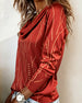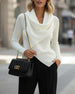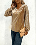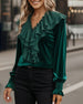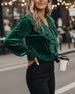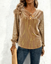 Top Plisowany Dekolt V Długi Rękaw Aksamit