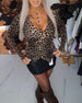 Top Seksowny Dekolt V Print Leopardzi Marszczony