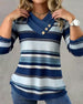 Top Dekolt V Kolorowy Pionowy Paski Print