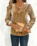 Elegancka koszulka z nadrukiem w panterkę, koronka, długi rękaw