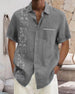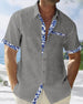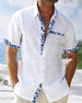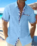 SPECYFIKACJA: Rodzaj Bluzki: Koszula Styl: Nieformalny, Biznesowy Materiał: Bawełna, Bawełna i len Okazja: Na co dzień, Praca Dekolt: Kołnierz koszuli Wzór: Nadruk/Wzór Typ rękawa: Rękaw standardowy Długość rękawa: Krótki rękaw Typ sylwetki: Luźny krój Pora roku: Wiosna, Lato, Jesień Detale: Kieszeń, Guziki Paczka zawiera: 1 x Koszula TABEL...