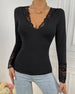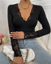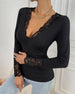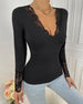 SPECYFIKACJE: Rodzaj Bluzki: Topy Styl: Nieformalny Materiał: Bawełna z domieszką, Koronka Okazja: Na co dzień, Wakacje Dekolt: W serek Wzór: Jednolity Kolor Sleeve Type: Rękaw standardowy Długość rękawa: Długi rękaw Typ sylwetki: Regularny Pora roku: Wiosna, Jesień Detale: Prześwitujące, Koronka Paczka zawiera: 1 x Top TABELA ROZMIARÓW (c...
