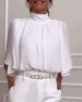 Jednokolorowa bluzka z wysokim kołnierzem i rękawami motylkowymi