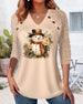 Bluzka z kontrastowym nadrukiem dekoltem w serek swobodnym krojem i długim rękawem