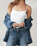 Koszula bez rękawów z dekoltem w szpic i kieszeniami