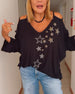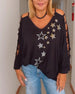 Bluzka z wycięciem na ramieniu i nadrukiem gwiazd