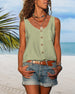 Styl: Podstawy Materiał: Poliester Dekolt: Okrągły dekolt Rękaw: Bez rękawów Wzór: Jednolity Okazja: Na co dzień,Wakacje Detale: Guziki Typ sylwetki: Regularny Pora roku: Wiosna, Lato, Jesień Paczka zawiera: 1* Koszulka bez rękawów Tabela Rozmiarów: (Mały rozmiar) Rozmiar Biust(cm) Długość(cm) S 90 65 M 95 66...