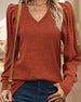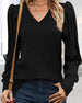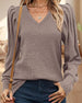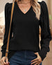 Jednokolorowy top z długim rękawem i dekoltem w kształcie litery V