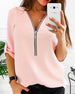 Luźna jednokolorowa bluza z długim rękawem i zamkiem błyskawicznym