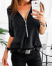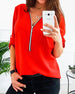 Styl: Nieformalny Rodzaj: Koszula Materiał: Poliester Dekolt: W serek Rodzaj rękawa: Rękaw standardowy Rękaw: 3/4 Wzór: Jednolity Okazja: Na co dzień, Wakacje Detale: Zamek błyskawiczny Typ sylwetki: luźny krój Pora roku: Wiosna, Lato, Jesień Paczka zawiera: 1 * bluzka Tabela Rozmiarów: Rozmiar Długość(cm) Ręk...
