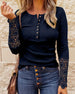 SPECYFIKACJA: Rodzaj Bluzki: Bluzka Styl: Elegancki Materiał: 95% Poliester, 5% Spandex Okazja: Na co dzień Dekolt: Okrągły dekolt Wzór: Jednolity Kolor Typ rękawa: Rękaw standardowy Długość rękawa: Długi rękaw Typ sylwetki: Regularny Pora roku: Wiosna, Jesień Detale: Guziki, Koronka Paczka zawiera: 1 x Bluzka TABELA ROZMIARÓW (cm) ...