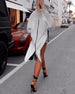 CECHY Zamek błyskawiczny z tyłu: Elegancki zamek błyskawiczny z tyłu dodaje nowoczesnego akcentu, ułatwiając noszenie i zapewniając idealne dopasowanie. Asymetryczny krój: Nieregularny, asymetryczny krój zapewnia szykowny i nowoczesny wygląd, dzięki któremu wyróżnisz się z tłumu. Kołnierzyk wykładany: Klasyczny kołnierzyk wykładany dodaje po...