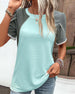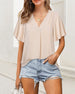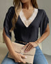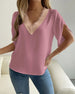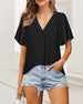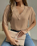 Jednokolorowa bluzka z krótkim rękawem i dekoltem w serek