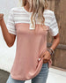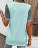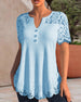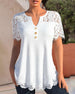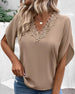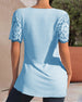 SPECYFIKACJA: Rodzaj Bluzki: Koszulka Styl: Elegancki Okazja: Na co dzień Dekolt: W serek Wzór: Jednolity Kolor Typ rękawa: Rękaw standardowy Długość rękawa: Krótki rękaw Typ sylwetki: Regularny Pora roku: Wiosna, Lato, Jesień Detale: Patchwork, Koronka Materiał: Poliester Paczka zawiera: 1 x Koszulka TABELA ROZMIARÓW (cm) Rozm...