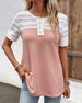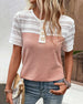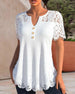 SPECYFIKACJA: Rodzaj Bluzki: Bluzki Styl: Elegancki Materiał: Bawełna z domieszką Okazja: Na co dzień Dekolt: Okrągły dekolt Wzór: Wielokolorowa Typ rękawa: Rękaw standardowy Długość rękawa: Krótki rękaw Typ sylwetki: Regularny Pora roku: Wiosna, Lato, Jesień Detale: Patchwork, Guziki, Koronka Paczka zawiera: 1 x Bluzka TABELA ROZMIARÓW (cm...