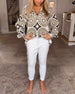 Bluzka z geometrycznym nadrukiem i długim rękawem