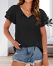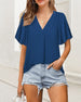 SPECYFIKACJA: Rodzaj Bluzki: Koszulka Styl: Nieformalny, Biznesowy Materiał: Bawełna z domieszką Okazja: Na co dzień, Praca Dekolt: W serek Wzór: Jednolity Kolor Typ rękawa: Rękaw z falbanką Długość rękawa: Krótki rękaw Typ sylwetki: Regularny Pora roku: Wiosna, Lato, Jesień Detale: Odcinane Paczka zawiera: 1 x Koszulka TABELA ROZMIARÓW (c...