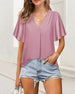 SPECYFIKACJA: Rodzaj Bluzki: Koszulka Styl: Elegancki Materiał: Bawełna z domieszką Okazja: Na co dzień Dekolt: W serek Wzór: Jednolity Kolor Typ rękawa: Rękaw rozkloszowany Długość rękawa: Krótki rękaw Typ sylwetki: Regularny Pora roku: Wiosna, Lato, Jesień Detale: Marszczona Paczka zawiera: 1 x Koszulka TABELA ROZMIARÓW (cm) ...