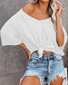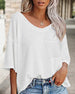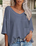 SPECYFIKACJA: Rodzaj Bluzki: Koszulka Styl: Nieformalny Okazja: Na co dzień Dekolt: W serek Wzór: Jednolity Kolor Typ rękawa: Opuszczone ramię Długość rękawa: Rękaw 3/4 Typ sylwetki: Luźny krój Materiał: Poliester Pora roku: Wiosna, Lato, Jesień Detale: Kieszeń Paczka zawiera: 1 x Koszulka TABELA ROZMIARÓW (cm) Rozmiar Biust D...