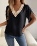 Jednolita kolorowa bluzka z krótkim rękawem i dekoltem w szpic