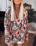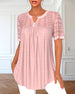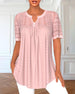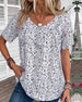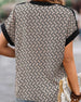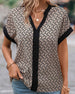 Wzorzysta bluzka z dekoltem w szpic i koronkowymi krótkimi rękawami