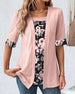 Bluzka z panelami i krótkimi rękawami w kwieciasty nadruk