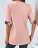 SPECYFIKACJA: Rodzaj Bluzki: Bluzki Styl: Nieformalny, Biznesowy Materiał: Bawełna z domieszką Okazja: Na co dzień, Praca Dekolt: W serek Wzór: Nadruk/Wzór Typ rękawa: Rękaw standardowy Długość rękawa: Krótki rękaw Typ sylwetki: Regularny Pora roku: Wiosna, Lato, Jesień Detale: Patchwork Paczka zawiera: 1 x Bluzka TABELA ROZMIARÓW (cm) ...