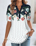 SPECYFIKACJA: Rodzaj Bluzki: Bluzki Styl: Nieformalny Materiał: Bawełna z domieszką Okazja: Na co dzień Dekolt: Dekolt Kopertowy Wzór: Kwiatowy, W kropki, Nadruk/Wzór Typ rękawa: Rękaw standardowy Długość rękawa: Krótki rękaw Typ sylwetki: Regularny Pora roku: Wiosna, Lato, Jesień Detale: Guziki Paczka zawiera: 1 x Bluzka TABELA ROZMIARÓW (...