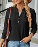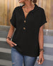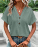 Swobodna bluzka z dekoltem w serek w jednolitym kolorze zapinana na guzik