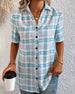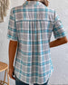 SPECYFIKACJA: Rodzaj Bluzki: Bluzki Styl: Nieformalny Materiał: Bawełna z domieszką Okazja: Na co dzień Dekolt: Dekolt Kopertowy Wzór: W Szkocką Kratę Typ rękawa: Rękaw standardowy Długość rękawa: Długi rękaw Typ sylwetki: Regularny Pora roku: Wiosna, Lato, Jesień Detale: Guziki Paczka zawiera: 1 x Bluzka TABELA ROZMIARÓW (cm) Rozmiar B...
