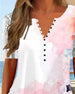 SPECYFIKACJA: Rodzaj Bluzki: Bluzki Styl: Nieformalny Materiał: Bawełna z domieszką Okazja: Na co dzień Dekolt: W serek Wzór: Nadruk/Wzór Typ rękawa: Rękaw standardowy Długość rękawa: Krótki rękaw Typ sylwetki: Regularny Pora roku: Wiosna, Lato, Jesień Detale: Guziki Paczka zawiera: 1 x Bluzka TABELA ROZMIARÓW (cm) Rozmiar Biust Dł...