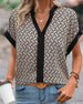 Zapinana na guziki bluzka z nadrukiem i krótkim rękawem