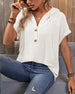 SPECYFIKACJA: Rodzaj Bluzki: Bluzki Styl: Nieformalny Materiał: 100% Poliester Okazja: Na co dzień Dekolt: W serek Wzór: Jednolity Kolor Typ rękawa: Rękaw standardowy Długość rękawa: Krótki rękaw Typ sylwetki: Regularny Pora roku: Wiosna, Lato, Jesień Detale: Guziki, Troczek Paczka zawiera: 1 x Bluzka TABELA ROZMIARÓW (cm) Rozmia...