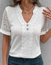 SPECYFIKACJA: Rodzaj Bluzki: Bluzki Styl: Elegancki Materiał: Bawełna z domieszką, Koronka Okazja: Na co dzień Dekolt: W serek Wzór: Jednolity Kolor Typ rękawa: Rękaw standardowy Długość rękawa: Krótki rękaw Typ sylwetki: Regularny Pora roku: Wiosna, Lato, Jesień Detale: Patchwork, Guziki Paczka zawiera: 1 x Bluzka TABELA ROZMIARÓW (cm) ...