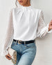 Elegancka bluzka z koronkowym rękawem w jednolitym kolorze